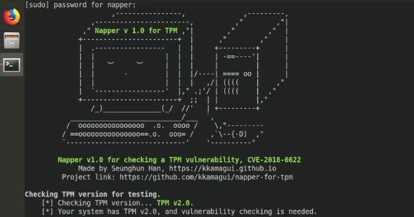To mitigate the vulnerabilities, we also present countermeasures and a new tool, “Napper,” to check the vulnerabilities of the TPM. Napper is a bootable USB device based-on Linux, and it has a kernel module and a vulnerability checking software. When you boot a system with the Napper, it makes your system to take a nap to check the vulnerabilities and to report the result to you.